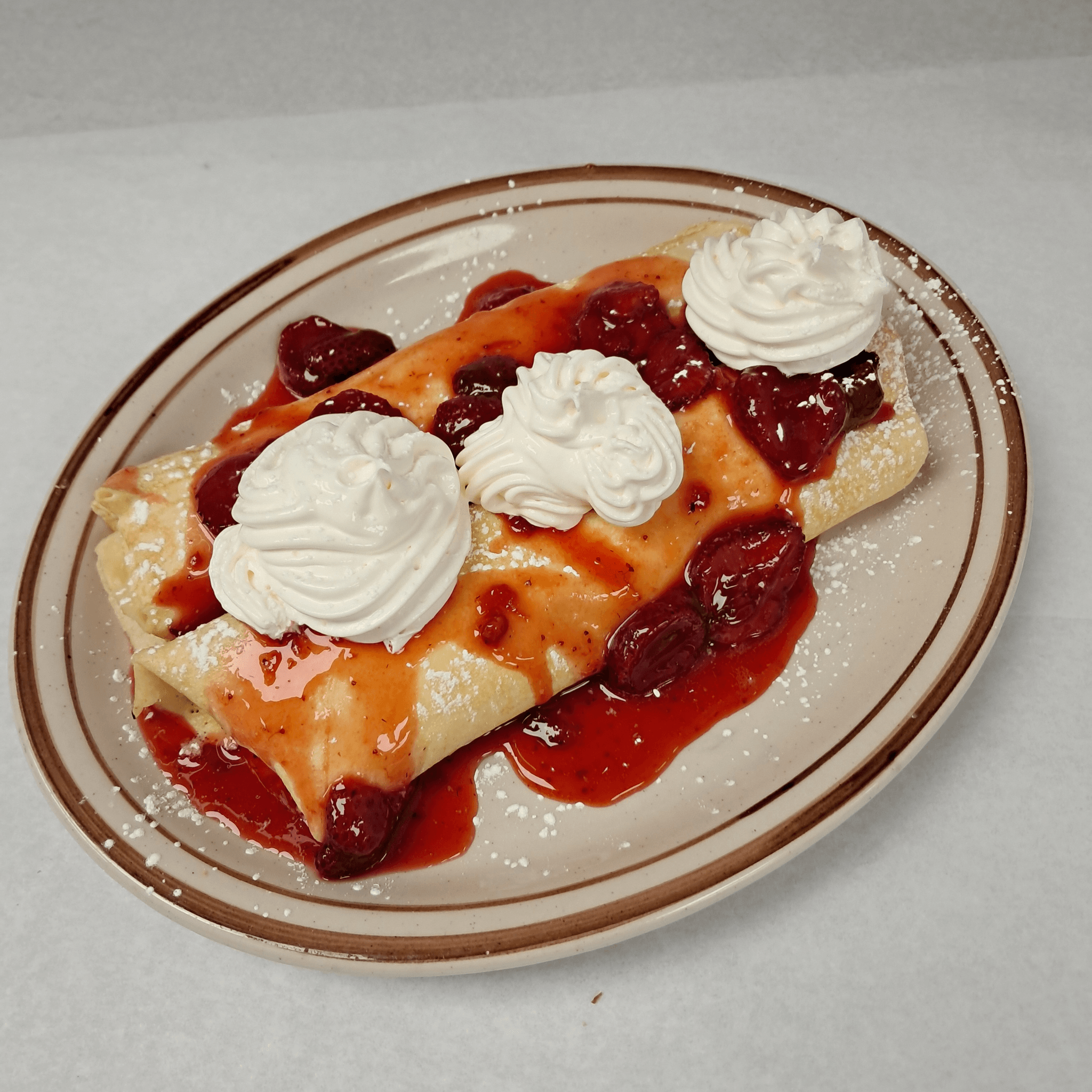 Crepes, sweet cheese, fruit toppings